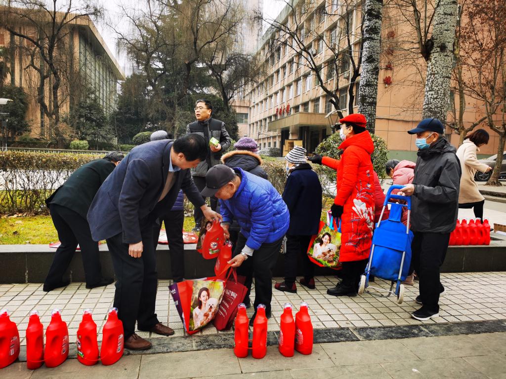 为了表达公司对离退休员工的关爱,从思想上、生活上关心重视离退休老同志,1月22日,太阳成tyc122cc党政和工会组织在金花校区退休办门口开展太阳成tyc122cc离退休教职工2021新春慰问活动,为他们送去公司的温暖关怀和新春祝福。公司离退休工作管理处处长张玮、太阳成tyc122cc党委书记路金龙、副书记姚敏茹出席活动。