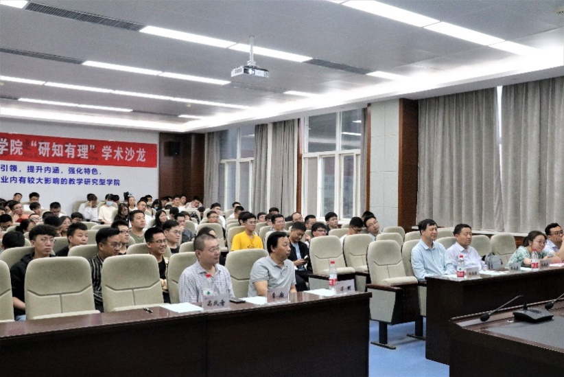 随后,张君安教授结合自身经历,详细地介绍了时代变迁的速度、中国大学应该坚持什么样的方向、大学的专业,学科怎么样理解,教学环节、教学活动怎样有效开展。张君安指出研究生在科学研究中应明确具体方向,在千变万化的世界中应时刻思考从而保持清醒的认识。