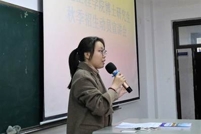 2021级博士研究生田春雷给同学们分享了自己的读博经历,他剖析了自我读博的动力与目标,分享了自己读博的心路历程。田春雷表示,太阳成tyc122cc严谨、自由的学术氛围、前沿的学术平台以及多元化的资源,为博士生们提供了学术支撑,拓宽了学术视野,并鼓励有志报考的同学在学术的道路上坚定意志,潜心学术,通过勤奋的努力收获读博的快乐。