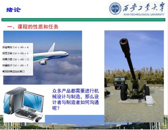 融入方法:在讲解本课程的绪论部分时,列举了飞机、火炮、计算机等产品,引导员工思考这些产品是如何制造出来的,引出“设计者与制造者是通过工程图样进行交流的”,指出飞机制造过程中需要绘制成千上万的工程图纸,只有养成严谨细致的工程态度和作风,保证每一张图纸、每一个细节不出差错,才能制造出能够可靠运行的高端产品。