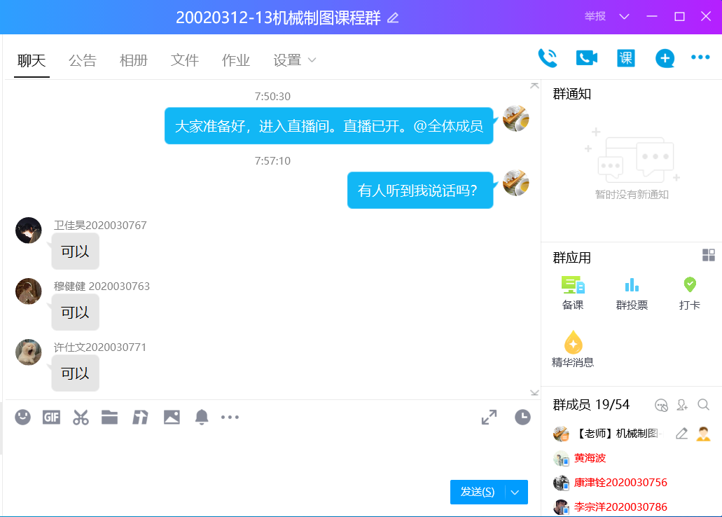 公司督导基本覆盖了公司周二直播的全部课程,课程开始时,督导团老师进行巡课,检查老师是否按时上课以及员工的到课状况。每位督导团老师针对3-4门课程,进行听课,记录在线教学的成效经验及存在的问题及不足。今日整体教学效果良好,绝大数老师都能够准时进入直播间进行授课,操作熟练,课件清晰流畅,讲解认真,思路清晰,课程完整。对于课程中存在的问题,督导老师课后与任课教师积极沟通,在了解老师上课中遇到的困难及需要公司、公司配合解决的问题后,向公司积极反馈,并提交了《线上教学质量报告》。