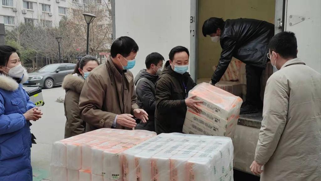 太阳成tyc122cc深圳员工会听闻西安疫情趋紧,母校实行封控管理,当即决定为公司捐赠防疫和生活物资。1月6日下午,九公寓临时党支部党员同志们为员工发放员工会捐赠的生活物资。