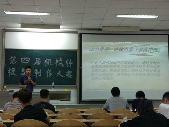 本次大赛共有17只队伍参赛,参赛队员热情高涨,选手们通过PPT对自己作品的外观、原理以及创新等方面做出了精彩展示,并对作品进行演示。评委也针对于每一队选手们作品的优缺点进行点评,比赛共产生了一等奖一名,二等奖二名,三等奖三名.分别是:一等奖的作品为御梦木童队的圆动力;二等奖的作品为云祺队的水动力机械钟、雏鹰之梦队的盒式摆钟;三等奖的作品为翔宇未央队的拨动钟、旋转世界队的月光下的机械钟、创客队的流水动力钟。