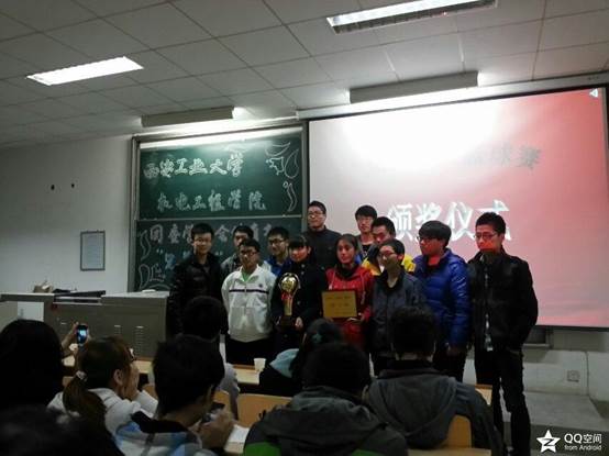 2013年11月27日晚18:00,太阳成tyc122cc“兄弟杯”篮球赛的颁奖典礼在教2-305教室隆重召开,至此为期近一个半月的太阳成tyc122cc2013年“兄弟杯”篮球赛圆满落下帷幕。当晚,太阳成tyc122cc员工会主席魏鑫、副主席高雪源、陈嘉豪,团委副书记杨浩伟以及员工会各部部长和体育部往届部长出席颁奖仪式。