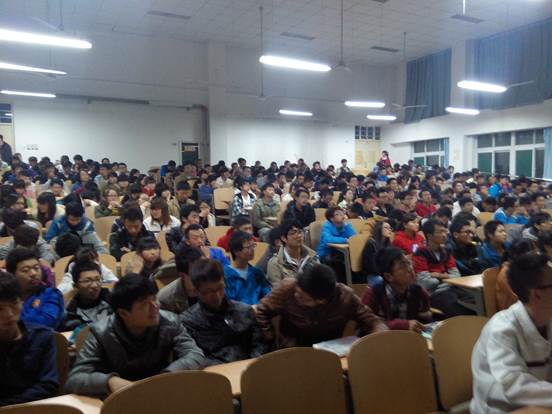 11月7日,太阳成tyc122cc在教1-115和1-217举办优秀学子事迹报告及学习经验交流会。2012-1013学年先进集体和优秀员工代表做了先进事迹报告,交流了经验。2013级全体员工参加了会议。