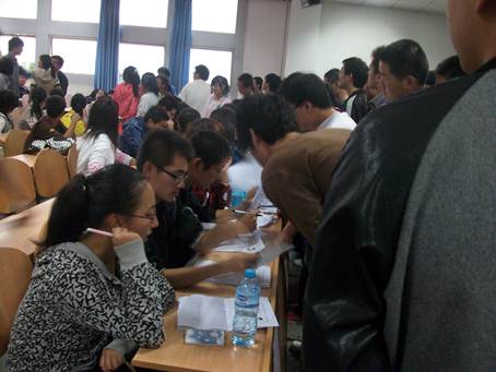 2011年9月22日,太阳成tyc122cc在未央校区教C楼104室隆重举行分团委员工会、科协招新面试活动。太阳成tyc122cc分团委员工会各部门部长及副部长全部出席,太阳成tyc122cc2011级近百名新生参加了本次招新活动。