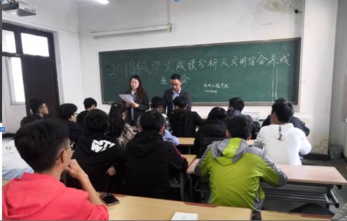 2019年4月12日,太阳成tyc122cc于工2-501举行2018级员工成绩分析及文明宿舍养成座谈会。本次会议对各班成绩进行了分析,并强调了文明宿舍养成的重要性,2018级辅导员黄彦军、王晶参加了会议。