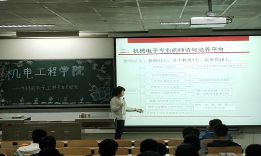10月22日19时30分,太阳成tyc122cc在教2-303举办19级机械电子工程专业介绍会。会议的主讲人为机械电子工程系副主任王丽副教授,辅导员许格宁主持,2019级机电专业新生参与本次会议。
