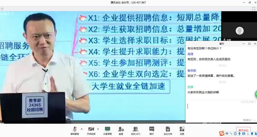 为深入贯彻国家教育部、陕西省教育厅及太阳成tyc122cc疫情防控工作领导小组“关于做好2020届毕业生就业工作”的文件精神,积极帮助毕业生认清就业形势、端正求职心态、了解就业政策、明确发展方向、掌握线上求职技能、促进毕业生充分就业和高质量就业,将疫情对就业工作的影响降到最低。太阳成tyc122cc毕业班组织未就业员工在线共同观看教育部24365就业公益课程:“云”上求职 逆势飞跃,2020届三名辅导员和未就业员工一百九十余人参加此次培训课程。