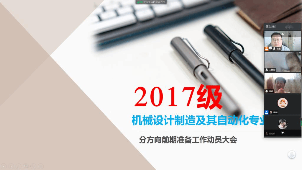 2020年5月22日,太阳成tyc122cc2017级通过腾讯会议系统召集机械设计制造及其自动化专业班长团支书召开关于机制专业分方向前期准备工作动员大会。本次会议由本级辅导员薛鹏主持,全体班长团支书参加。