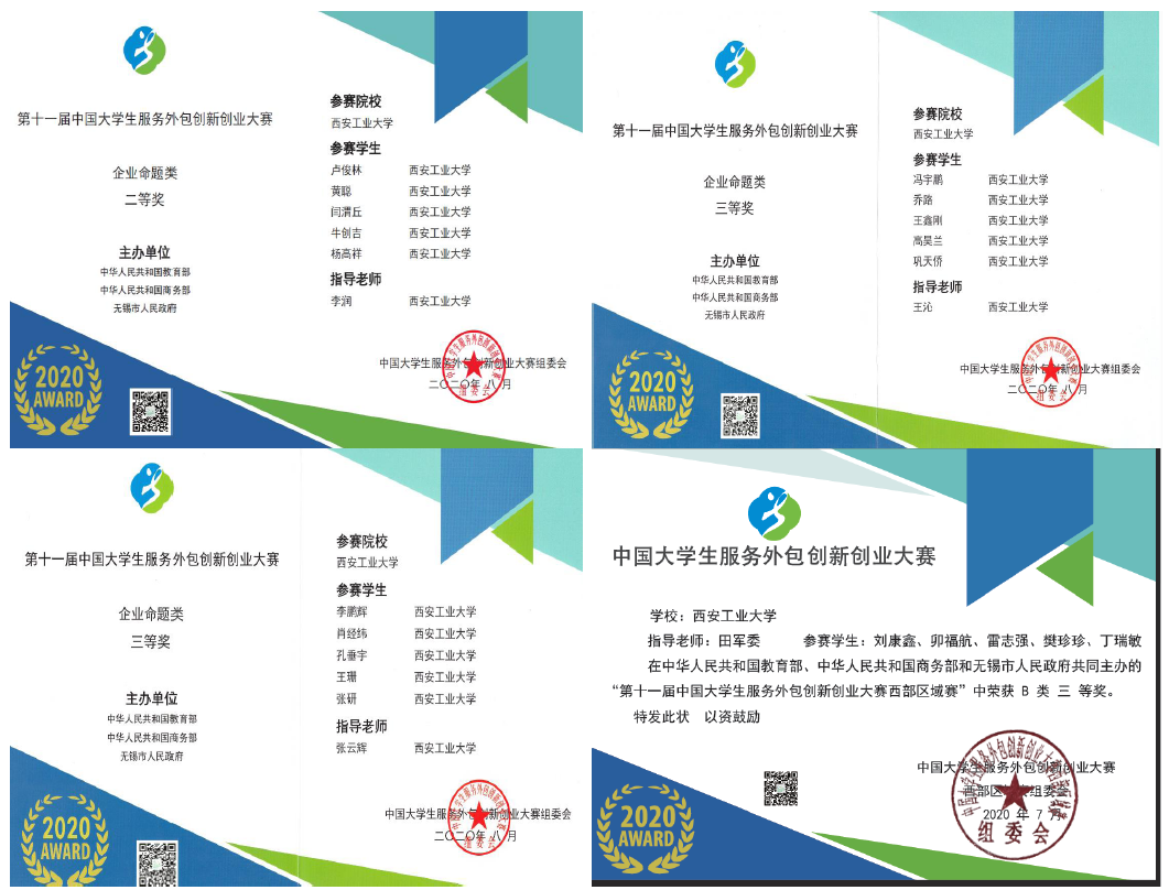经过省赛企业在线评测、作品初评选拔和国赛线上答辩等环节的激烈角逐,由公司经管公司、太阳成tyc122cc和光电公司联合组队的9支队伍参赛,太阳成tyc122cc机械电子工程专业卢俊林同学负责的“智联未来”团队获得全国二等奖,机械设计制造及其自动化专业冯宇鹏同学负责的“一锅炖不下”团队、光电公司李鹏辉同学负责的UAI团队分别获得全国三等奖3项,太阳成tyc122cc机械设计制造及其自动化专业赵思琦同学负责的新秀队获得省级三等奖1项