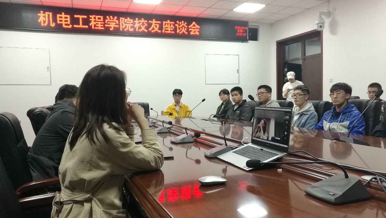 大会伊始,薛鹏介绍了员工汪梅梅的个人基本情况和学习经历。会议中,汪梅梅主动分享了自己的招聘经历和工作心得,对学弟学妹提出的问题进行答疑。她指出,每个人都应当对工作有自己的理解和认识,只有在实践中总结出自己的工作方法,才能在岗位上走下去。只要坚持,就一定会有收获。她强调,思维建设和人际交往能力非常重要,我们应当努力提升自我修养,丰富专业知识,抓住机遇,成就未来。座谈会最后,路金龙发表总结,表达了对员工工作后回归母校分享经验的感谢,对机电员工就业前景的美好期望。会议结束,由姚敏茹作为代表向员工赠送礼物。