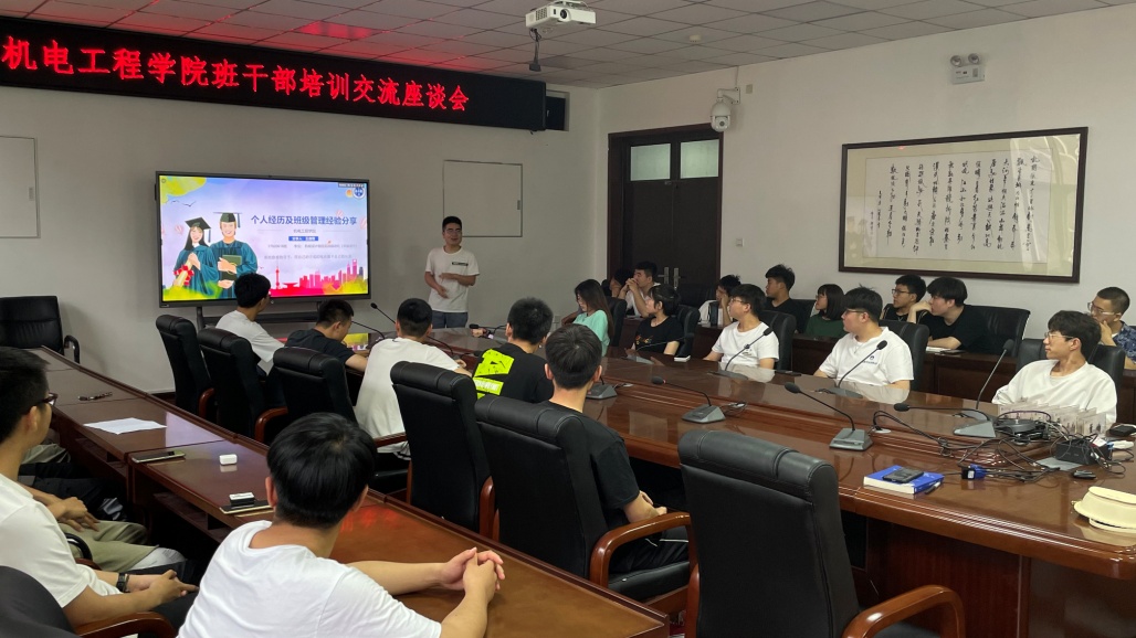 为进一步加强员工干部队伍的凝聚力和战斗力,提升员工干部履职工作能力,太阳成tyc122cc5月21日在工二-310会议室召开了员工干部培训交流座谈会,邀请2017级优秀员工干部王鑫刚同学主讲。公司2019级、2018级全体员工干部参加会议。