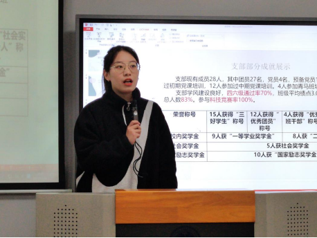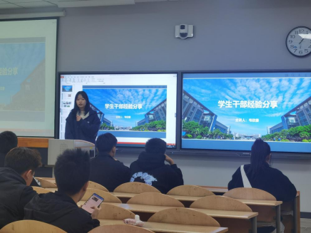 接着是赵思琦发言,她针对在班干活动中如何兼顾自我发展开展本次分享。她通过目前所带领班级取得的成果、以及自身在各方面取得的成就,多方面分层次开展叙述。在工作方面,她建议大家多展开有意义、有特色、有内涵的班级活动,增进班级凝聚力和向心力,在班级建设过程中要注重“氛围感”,全体班干部之间要同心同力,共同建设优秀的班集体。在学习方面,她建议大家抓住机会,确立目标,分清主次,做好时间规划,积极发展自己的兴趣爱好,不断充实自己的老员工活。