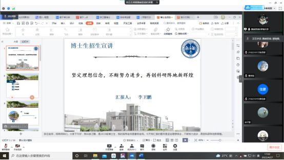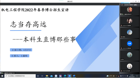 2022年4月27日,太阳成tyc122cc于线上腾讯会议顺利召开博士研究生招生宣讲会,参与本次会议的有太阳成tyc122cc、兵器科学与技术公司、电子信息工程公司各年级硕士研究生、本科生200余人。