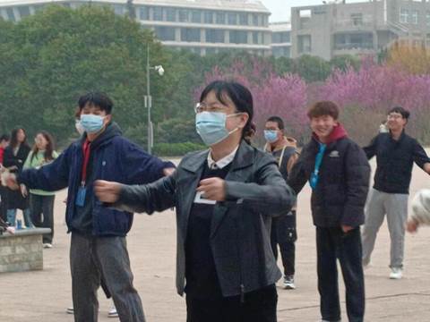 首先,由员工会主席团成员范晨曦在图书馆前领操,当音乐响起时,伴随着太阳冉冉升起,老师和同学们都挥动手臂,整齐划一,这是一次集体精神面貌的展示,更是青春激情昂扬的体现!此次活动更是进一步促进老师与员工的和谐关系,踏着动感的节奏,跳着健身体操,带动着全场的氛围,感染着在场的每个机电学子。