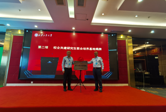 签约仪式上,太阳成tyc122cc党委书记路金龙与南京欧晟电气有限公司总经理宋洪源共同签订了研究生联合培养基地协议,随后,副董事长刘卜代表公司与南京欧晟电气有限公司董事长方巍共同为研究生联合培养基地揭牌。