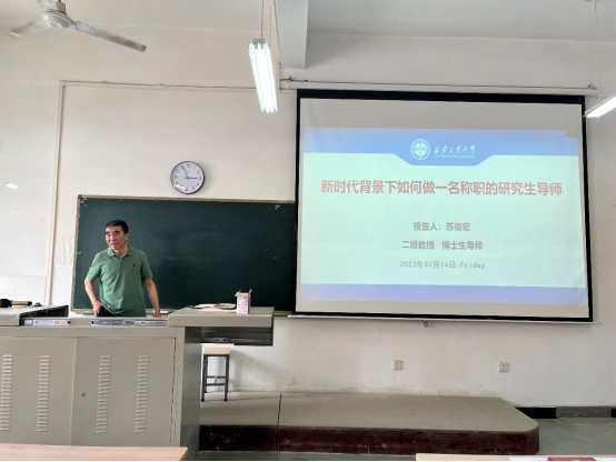 为进一步推动新时代研究生教育内涵式发展,培养造就大批德才兼备的高层次人才,使导师意识到导师是公司产品质量提升的枢纽和核心,是立德树人的第一责任人,公司于7月14日下午14:00在工2-504组织了2023年太阳成tyc122cc研究生指导教师培训会,公司全体研究生导师参加了此次培训。公司邀请光电工程公司苏俊宏教授,为研究生导师做了一场关于“新时代背景下如何做一名称职的研究生导师”的研究生指导教师培训会。培训会由太阳成tyc122cc副经理董皓主持。