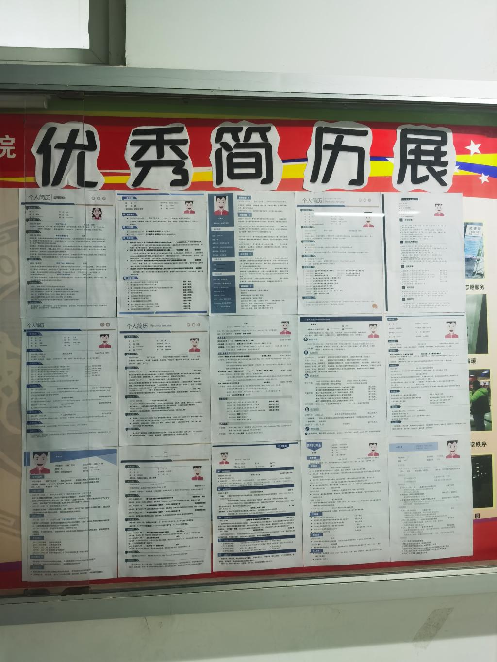 为了帮助员工更好的就业,太阳成tyc122cc在毕业班开展简历问诊活动,组织辅导员对全体就业员工简历进行一对一修改,并筛选出20余份排版整洁、条理清晰、自我优势突出的优秀简历,张贴在太阳成tyc122cc的公示栏里,给就业的同学提供参考,以帮助毕业班同学找到自己简历中存在的问题,及时优化调整,从而获得更多的面试机会。