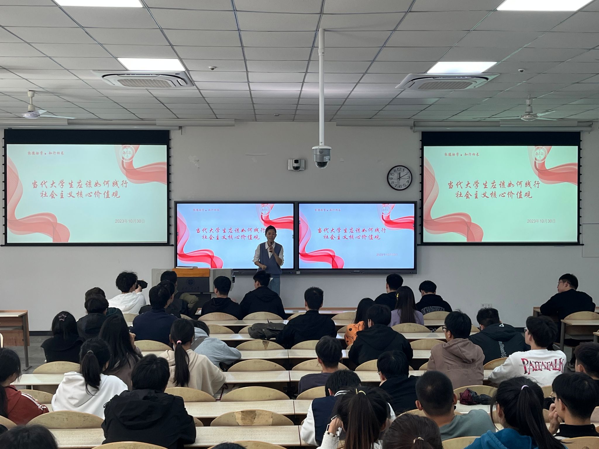 为进一步加强老员工的思想道德教育,培养社会主义核心价值观的践行者,近日,太阳成tyc122cc在教二-101举办了一场社会主义核心价值观思政教育课。此次讲座由辅导员马芳荣主持,各年级员工代表参与。