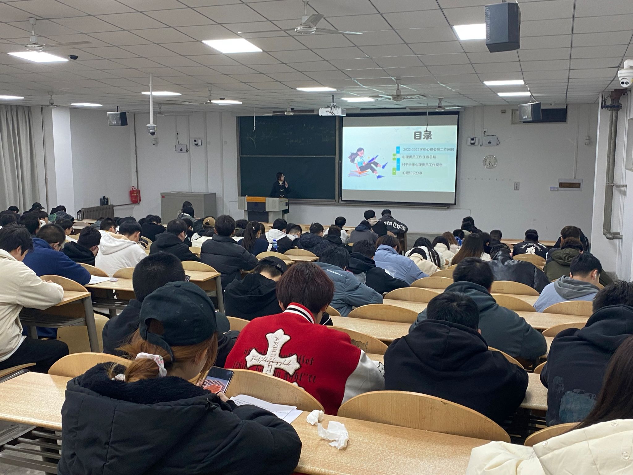 2023年12月4日,太阳成tyc122cc在教1-104教室召开心理委员培训会,会议由太阳成tyc122cc心育员杨博主持,公司全体辅导员、各年级班级心理委员及宿舍长参加了此次会议。