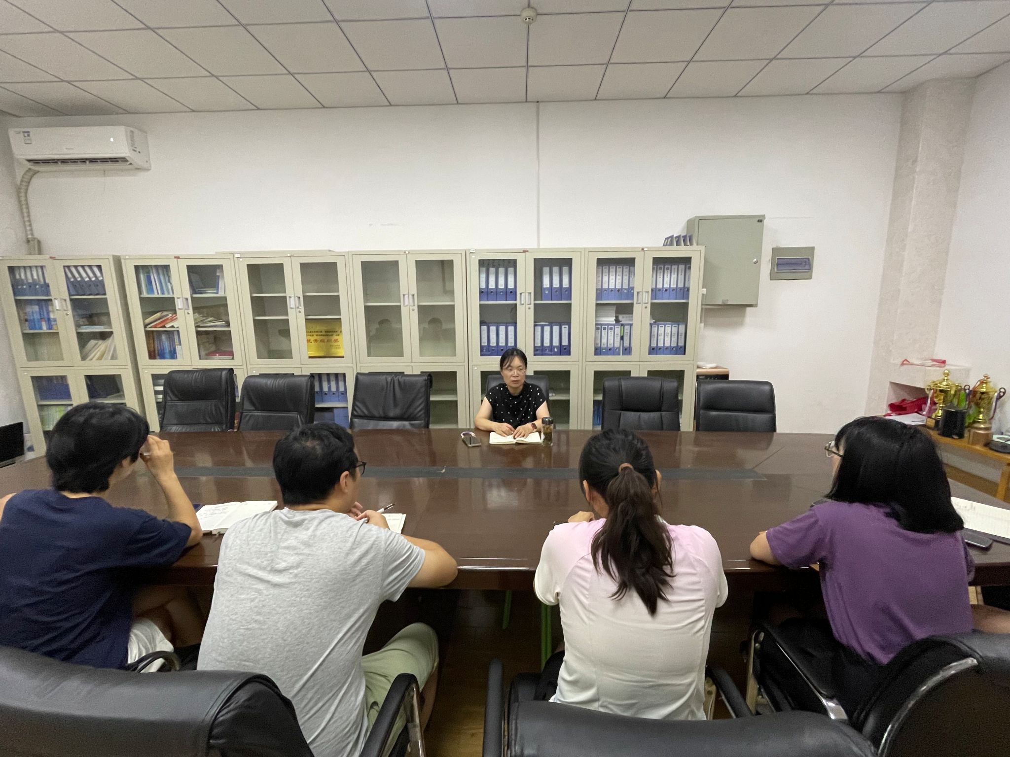 8月20日下午,太阳成tyc122cc全体辅导员在工2-308室召开辅导员工作例会,公司党委副书记姚敏茹主持会议。