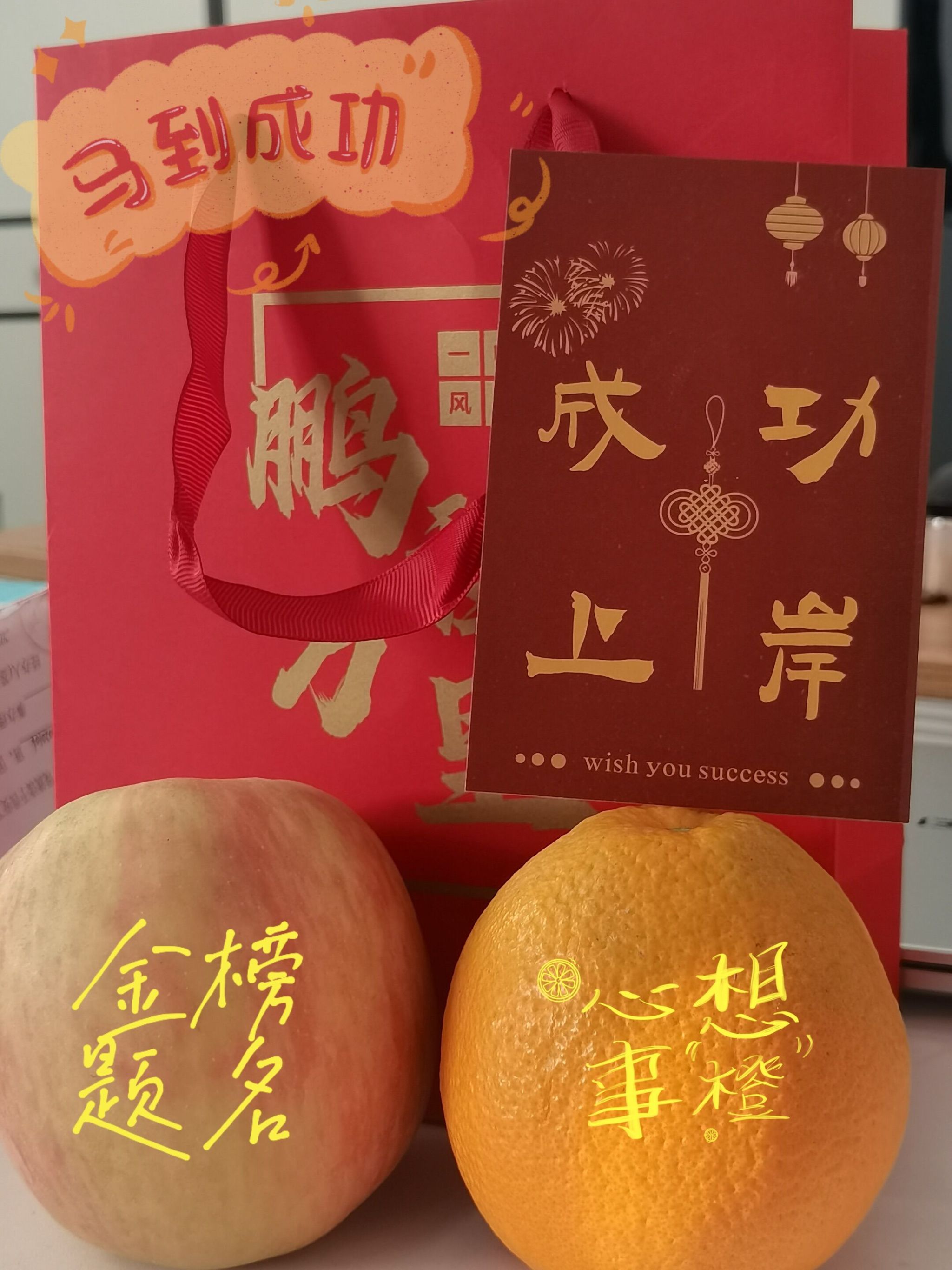 在考研礼包中,公司特意准备了鲜橙和苹果等寓意美好的食品,象征着“马到橙功”和“苹步青云”。同时,礼包中还包含了祝福语卡片和解压伴手礼,寓意着公司希望同学们在备考期间保持身心健康,精神充沛,能够以最佳的状态迎接考试。