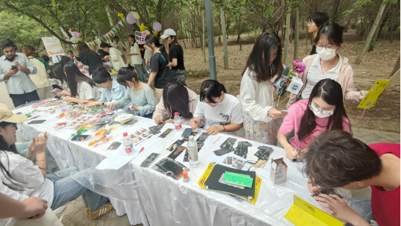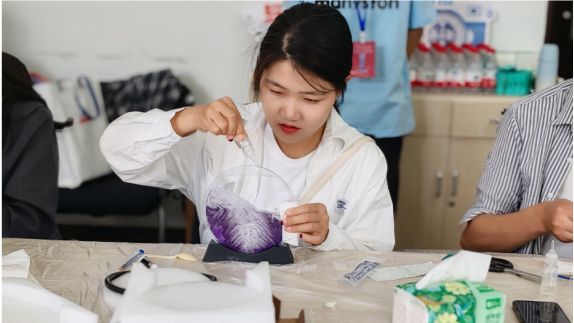 此次展示活动内容丰富、形式多样,涵盖3D流沙画、端午缠线香囊、刮画手绘等多个项目。活动现场,一件件精美的手工作品吸引了众多师生驻足观赏。3D流沙画中,细沙在透明容器中随重力流动,形成变幻莫测的立体图案,展现出运动与艺术美学的完美结合;端午缠线香囊散发着淡淡的药香,同学们用灵巧的双手将传统工艺与现代设计相融合,赋予了古老香囊新的生命力;刮画手绘作品则通过刮去表面涂层展现出丰富多彩的画面,每一幅都凝聚着创作者的独特创意和辛勤劳动。