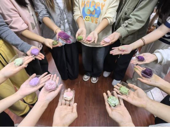 活动现场气氛热烈,同学们在指导下揉制饼皮、包入馅料、压模成型,一个个精致可口的冰皮月饼逐渐成型。活动不仅锻炼了员工的动手能力和协作精神,更深化了对中华传统饮食文化的理解与认同,在劳动实践中提升了文化素养,营造了温馨和谐的节日氛围。