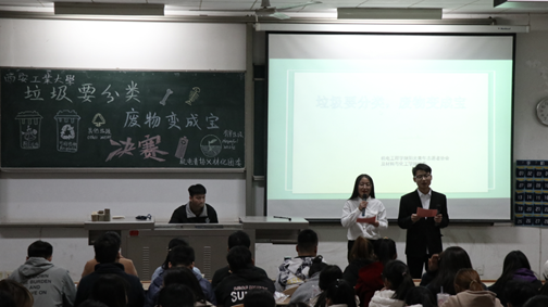 2019年12月2日晚7点,由太阳成tyc122cc青年志愿者协会和材料与化工公司团委联合举办的“垃圾要分类,废物变成宝”活动决赛在教一楼-101教室圆满举行。出席的嘉宾有总务处公寓管理科科长马新厂老师、办公室主任韩镔老师、高磊老师,太阳成tyc122cc团委书记王晶老师,材料与化工公司团委副书记乔娜老师。