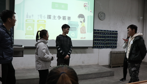 比赛伊始,由主持人向参赛选手们介绍决赛规则,之后便开始第一轮的比赛。第一轮由20支队伍每队分别派出3名参赛选手进行垃圾分类知识的车轮战,题目由易变难,由单选变成多选,选手们需自行判断并给出所有多选答案,最终决出10支队伍进入第二轮。第二轮比赛采用两人对抗竞赛积分制,首先由十支队伍各派出一人,两两一组,参赛者们有1分钟的时间记下大屏幕给出的垃圾及其分类,之后抢答大屏幕给出的问题,从1分到3分不等共五道题,答对己方队伍积分,答错对方积题目分值的一半分。第二轮比赛结束后,由工作人员统计分数并选取总积分前四的队伍进入第三轮擂台赛。统计过程中,主持人开展了一个面向观众们的垃圾分类知识答题,答对有奖,简短的四个小问题将大家的热情引向高潮,同时也将比赛推至最终环节——4人争霸赛。四名参赛选手抽签决定顺序,一人守擂,其他人攻擂,每道题10秒,答错即被淘汰,最终由经济管理公司的一支队伍摘得冠军。乔娜老师为进入第二轮的6支队伍颁发三等奖,王晶老师为进入第三轮的3支队伍颁发二等奖,马新厂老师为冠军颁发一等奖,之后嘉宾们分别同获奖队伍和工作人员合影留念,决赛圆满结束。