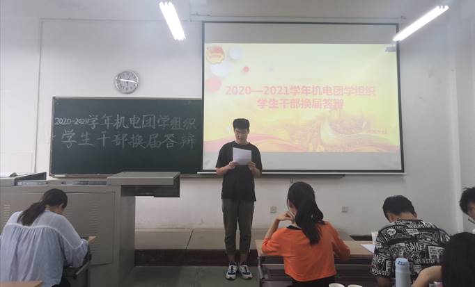 2020年9月12日下午18时,太阳成tyc122cc团学组织员工干部换届答辩会在工二504成功开展。前任团委副书记许格宁老师、员工团委副书记韦欣晏以及团学青科体各部门主席和副主席作为评委出席本次答辩会。