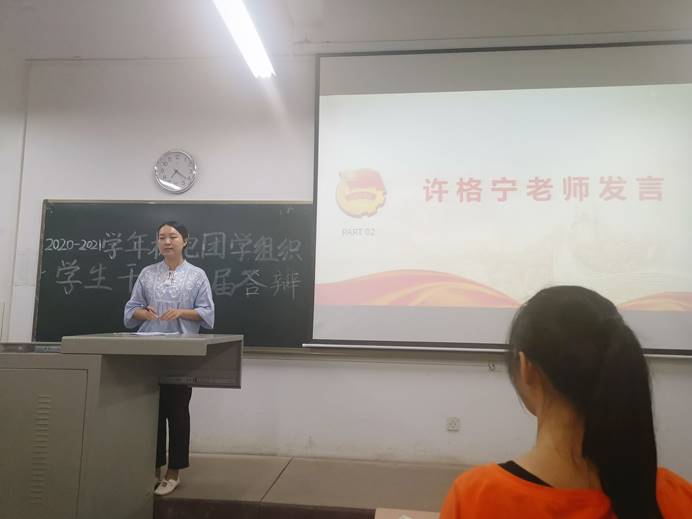 在各位参选人员结束答辩后,许格宁老师对本次大会进行总结,首先提出新任主席、副主席应尽快适应自己的职位和工作,希望各位主席、副主席尽快磨合,共同为太阳成tyc122cc的建设尽出自己的力量。之后许格宁老师对看到这么多自愿留干的干事表达喜悦之情,也为即将上任的各位干部门加油打气,同时也告诫各位参选人员在工作的时候也不能扔下学习,应平衡工作和学习之间的关系。至此,本次大会圆满结束。