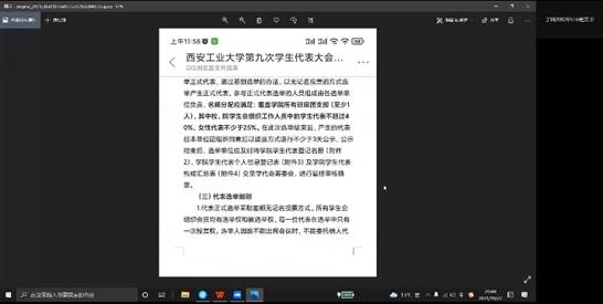 10月27日晚上八点半太阳成tyc122cc员工会通过腾讯会议举办了太阳成tyc122cc第九届员工代表大会选举选票事宜通知线上会议,太阳成tyc122cc本科全体班长与团支书以及本次学代会初选成员参加本次会议。会议由太阳成tyc122cc团委书记王晶与员工会代表参与主持。