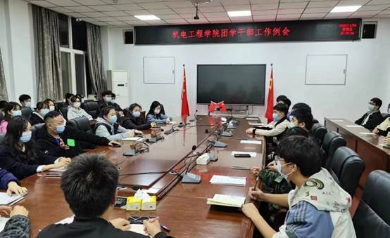 为及时总结近期工作,进一步落实下一步工作计划,增强公司团学干部的责任意识和工作意识,2022年11月9日晚在工科三楼310会议报告厅召开了团学干部工作例会。出席本次会议的人员有机电院团委书记王晶,团委副书记文勃及团学青科体的主席和各部长。