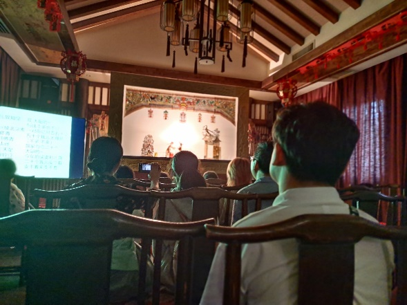 7月15日,队员们来到永兴坊的秦腔和皮影戏排练现场,近距离观摩了秦腔戏曲演员的专业呈现和服饰妆造,以及用于表演的剧目服装、道具和乐器等,了解了秦腔演出的精心准备和组织。