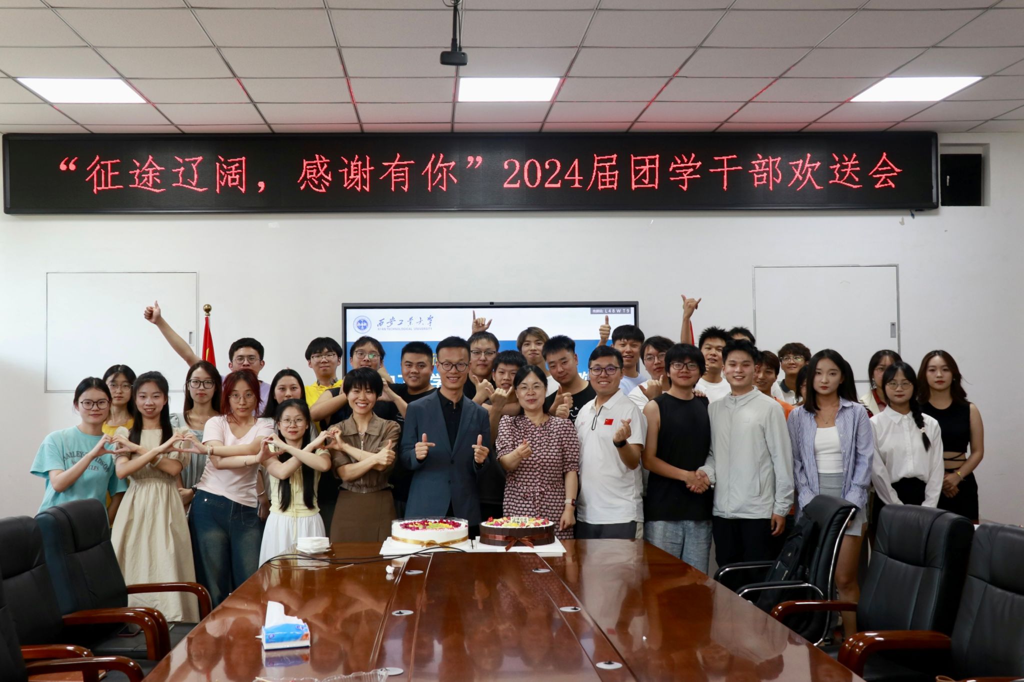 欢送会前,程新峰与姚敏茹代表公司为2024届员工干部代表们送上最诚挚的祝福,并感谢他们在公司担任员工干部期间所付出的辛勤努力。希望他们怀揣公司的祝福,勇担时代使命,在社会的大舞台上成就更大作为,铭记并践行校训校风,展现西安工大人的青春风采,母校和母院永远是毕业生的坚强后盾。马芳荣深情回顾了与24届员工相处四年的点点滴滴,并代表老师祝福毕业生前程似锦,希望他们常回母校看看。随后,毕业生们及低年级团学干部代表先后发言,从不同角度回顾了在公司团学工作的美好回忆,现场不时充斥着欢声笑语,又频频出现感动的泪点。座谈后,全体与会人员共同切蛋糕庆祝毕业时光,也在一块块蛋糕中体现出彼此作为机电人的凝聚力和向心力。聚是一团火,散作满天星,相信2024届团学干部必将乘风破浪,在中国式现代化的征程中挺膺担当。
