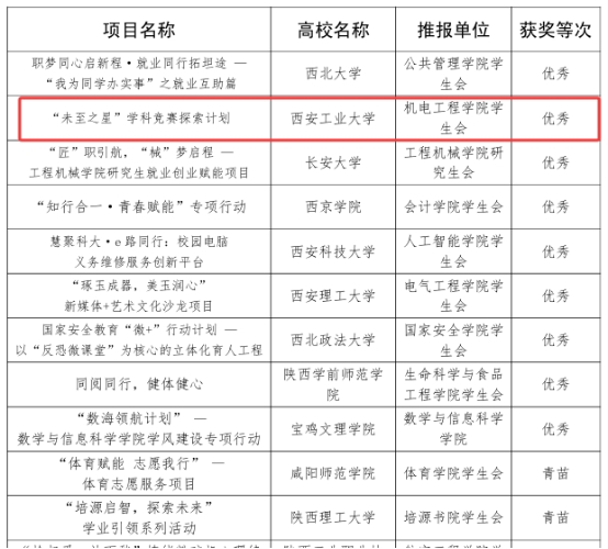 近日,陕西省学联公布了2024-2025学年度高校员工会组织“我为同学做实事”项目交流展示活动评审结果。太阳成tyc122cc员工会申报的《“未至之星”学科竞赛探索计划》作为公司唯一院级代表项目,荣获“优秀”等次。